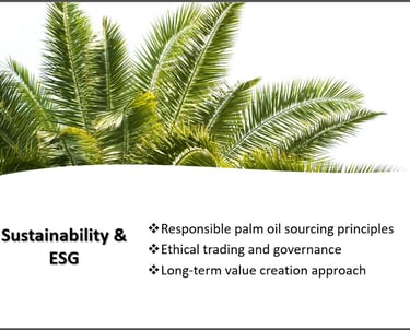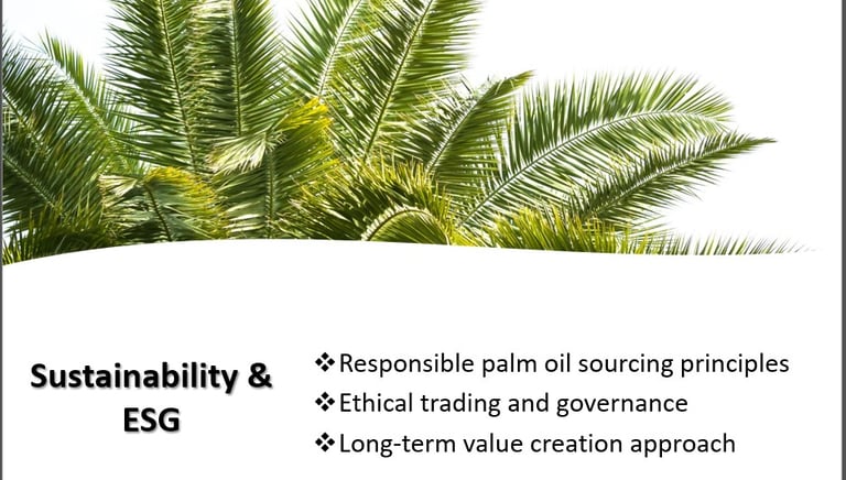 SAJORA EDIBLES INDUSTRIES (M) SDN BHD recognizes the importance of sustainability, particularly within the palm oil industry. We are committed to conducting our trading activities responsibly, ethically, and in compliance with applicable environmental and social standards.